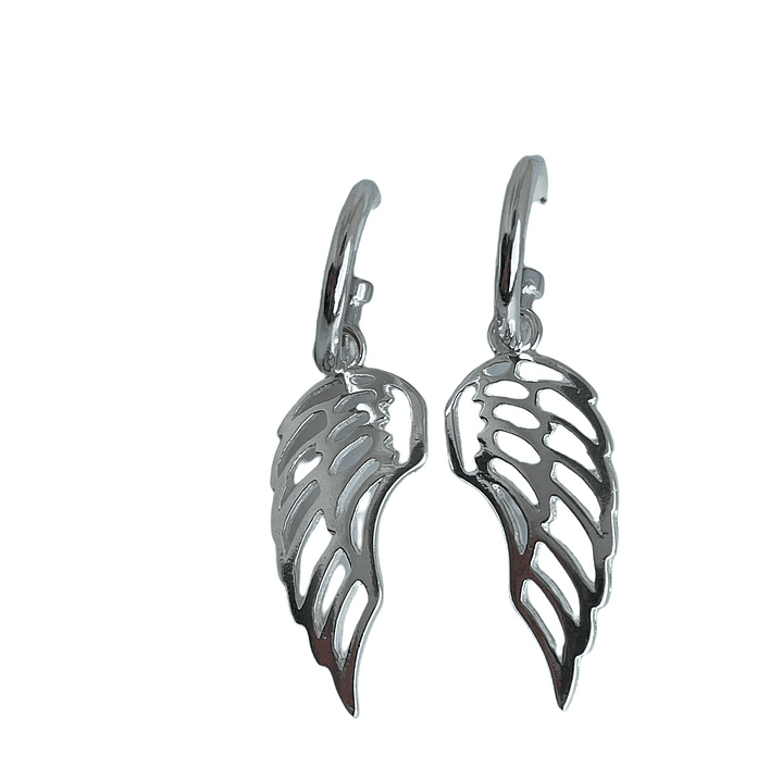 ¡Una combinación soñada! Preciosas argollas con alas colgantes en baño de plata, ideales para darle un toque diferente a tus outfits diarios. Cada argolla mide 1,6 cm de diámetro y cada ala mide 2,8 cm de largo, en total 4,5 cm de largo aprox.